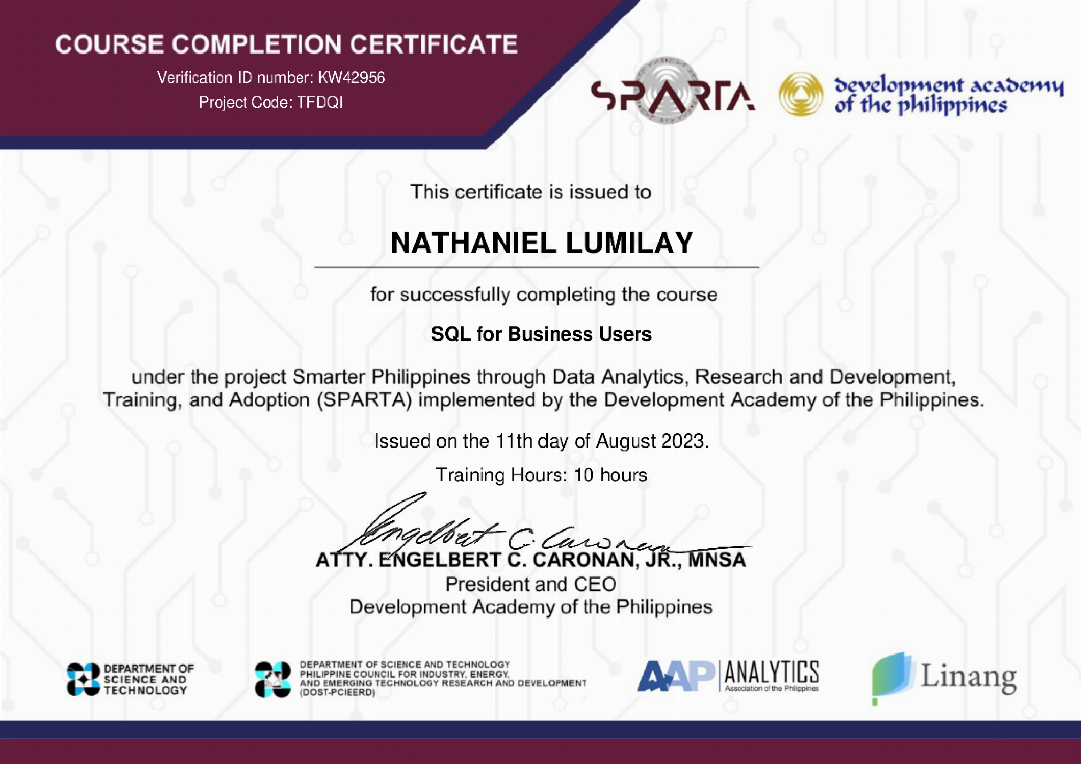 Hello! I am an IT major from the Philippines, specialized in Information Security. My interests include Data Analytics, Data Engineering, and other Tech stuff! I am also proud to be a recipient of the DEP DataCamp Scholarship for Learners. You can also check out my DataCamp profile here.
